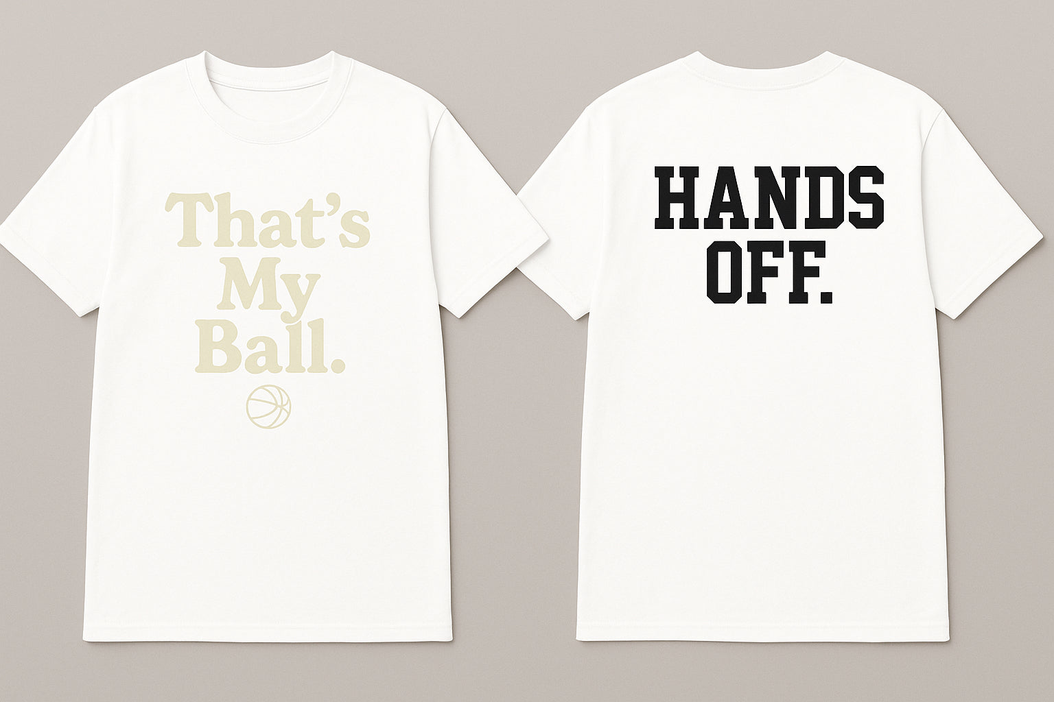 This isn’t just a T-shirt — it’s a statement. The “That’s My Ball” tee flips the script on classic confidence with a bold front graphic and an unapologetic “Hands Off” message on the back. Inspired by hustle, ownership, and style — this is for anyone who plays hard and lives loud